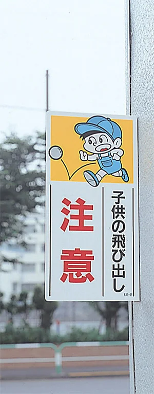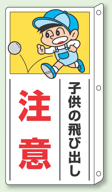 - 子供の飛び出しへの注意を、両面から確認しやすい形で掲示できる折り曲げタイプの標識です。