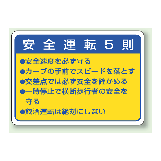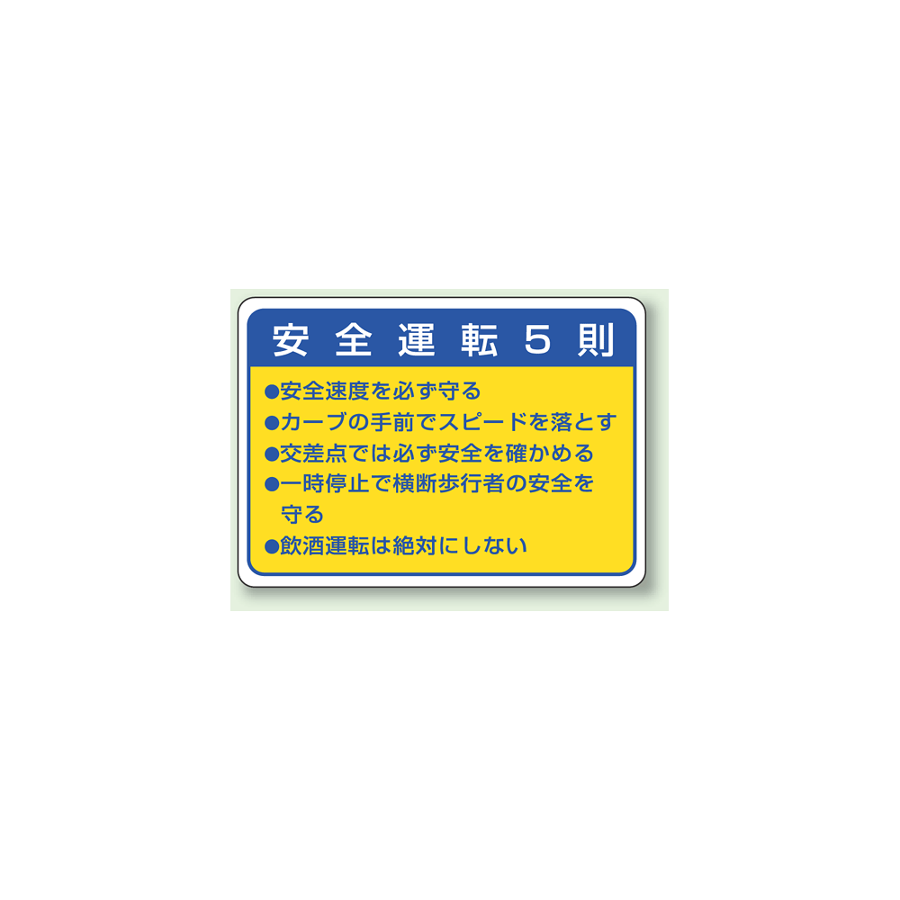 商品説明:安全運転5則 PVC (塩化ビニール) ステッカー 70×100 10枚1組 (832-32)