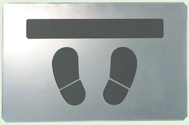立ち位置や停止位置を直感的に示しやすい、足形の吹付け用プレートです。
