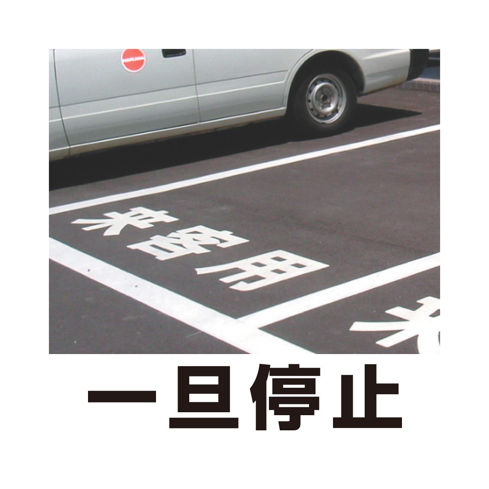 表示内容「一旦停止」。駐車場の駐車スペースに。※文字は全て角ゴシックです。
