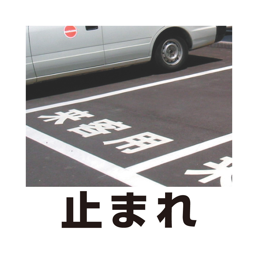 表示内容「止まれ」。駐車場の駐車スペースに。※文字は全て角ゴシックです。