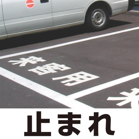停止位置を路面で大きく示しやすい、定番の文字タイプ表示シートです。