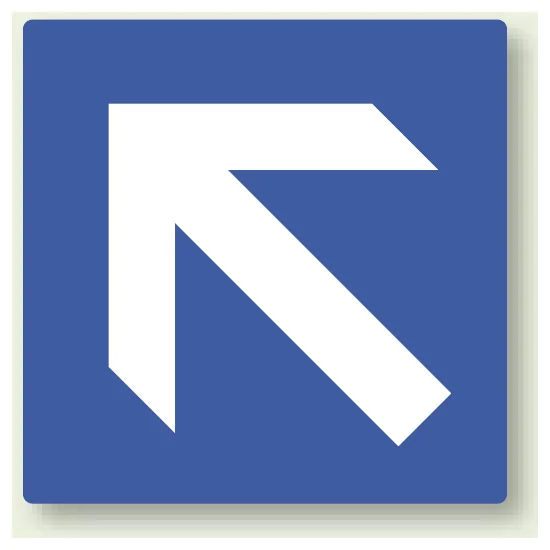 青色で斜め方向の誘導を分かりやすく伝えやすい矢印ステッカーです。