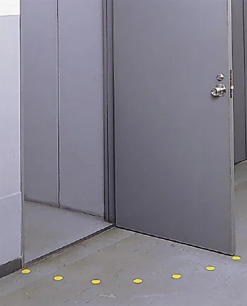 ドアの開閉方向を床面で分かりやすく示しやすい弧状ステッカーです。
