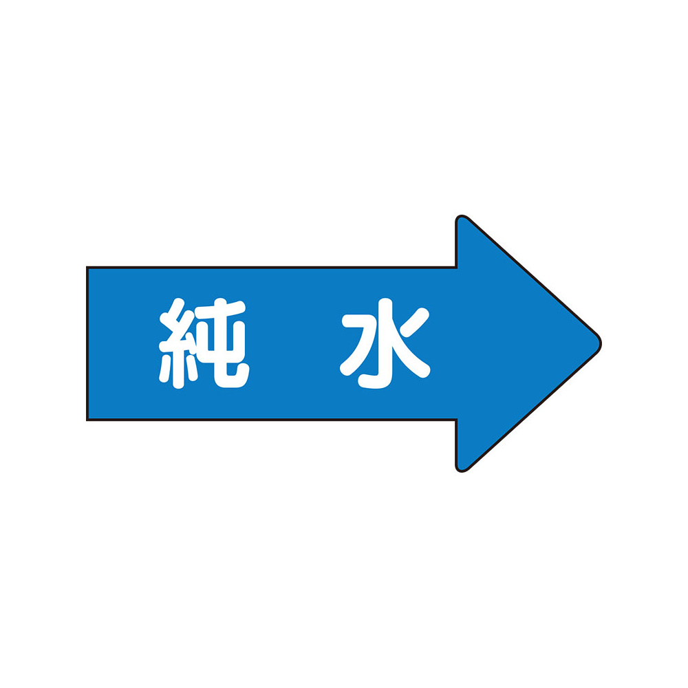 純水用に。流体名と方向を一度に表示できる配管方向用矢印ステッカー