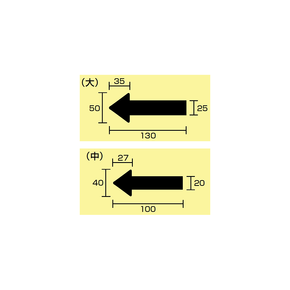 ■寸法図(mm)/JIS配管識別方向ステッカー 矢印型 大サイズ/中サイズ