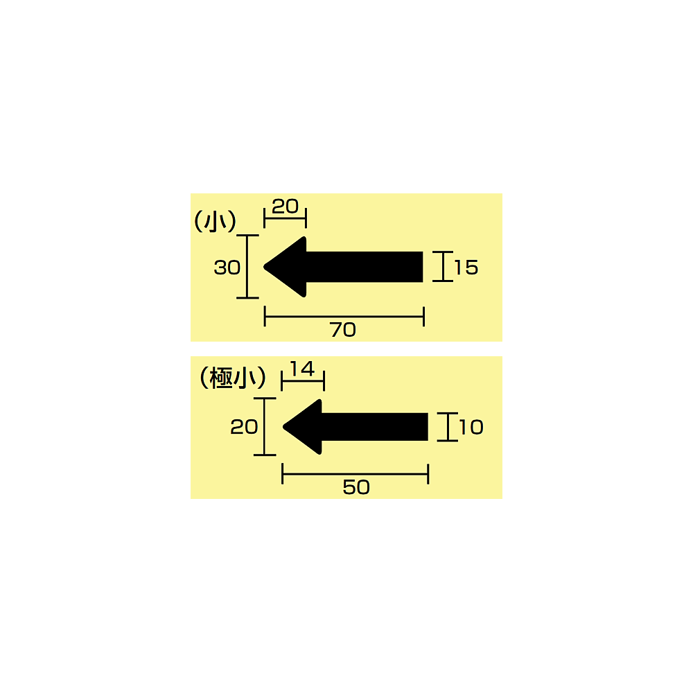 ■寸法図(mm)/JIS配管識別方向ステッカー 矢印型 小サイズ/極小サイズ