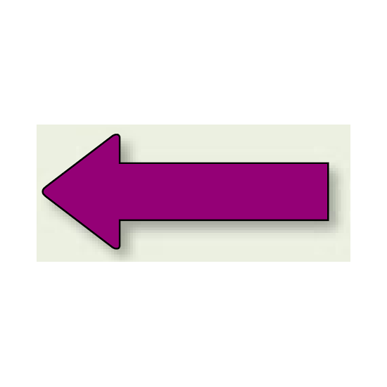 矢印型に切り抜かれた無地の配管用ステッカーです。識別色と方向表示が一目瞭然の矢印ステッカーです。赤紫に。