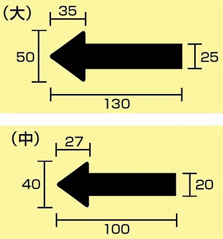■寸法図(mm)/JIS配管識別方向ステッカー 矢印型 大サイズ/中サイズ