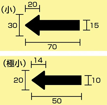 ■寸法図(mm)/JIS配管識別方向ステッカー 矢印型 小サイズ/極小サイズ