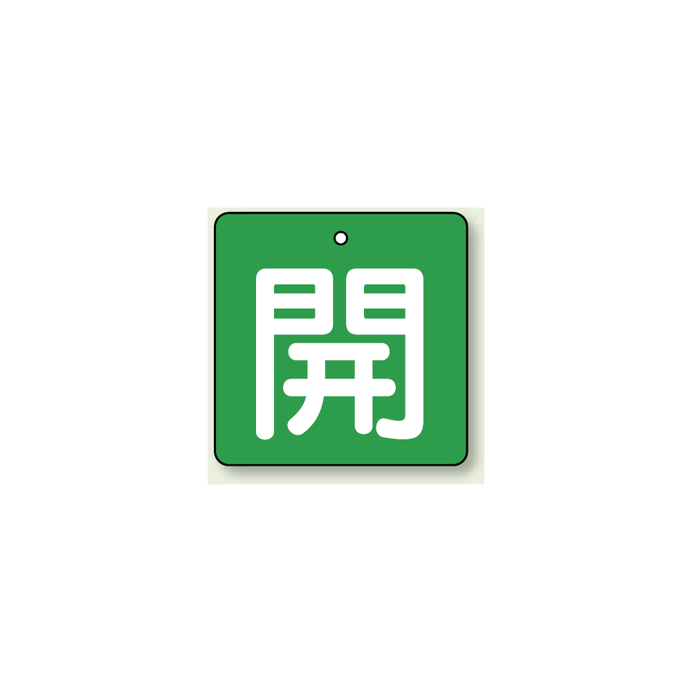 商品説明:バルブ開閉札 角型 開 (緑地/白文字) 両面表示 5枚1組 サイズ:(小)H50×W50mm (854-03)