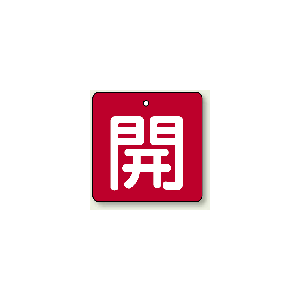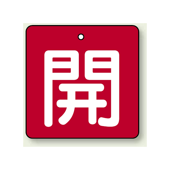 商品説明:バルブ開閉札 角型 開 (赤地/白文字) 両面表示 5枚1組 サイズ:(中)H65×W65mm (854-08)