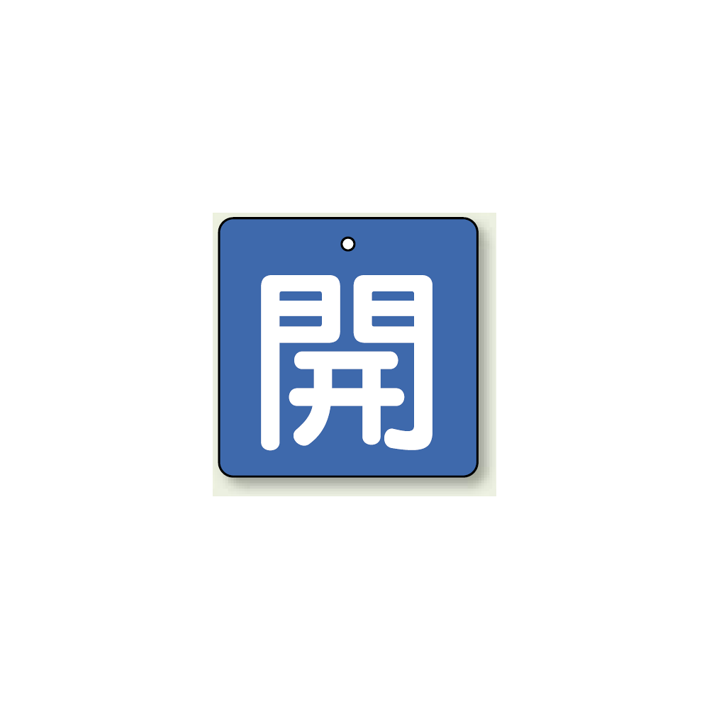商品説明:バルブ開閉札 角型 開 (緑地/白文字) 両面表示 5枚1組 サイズ:(大)H90×W90mm (854-13)