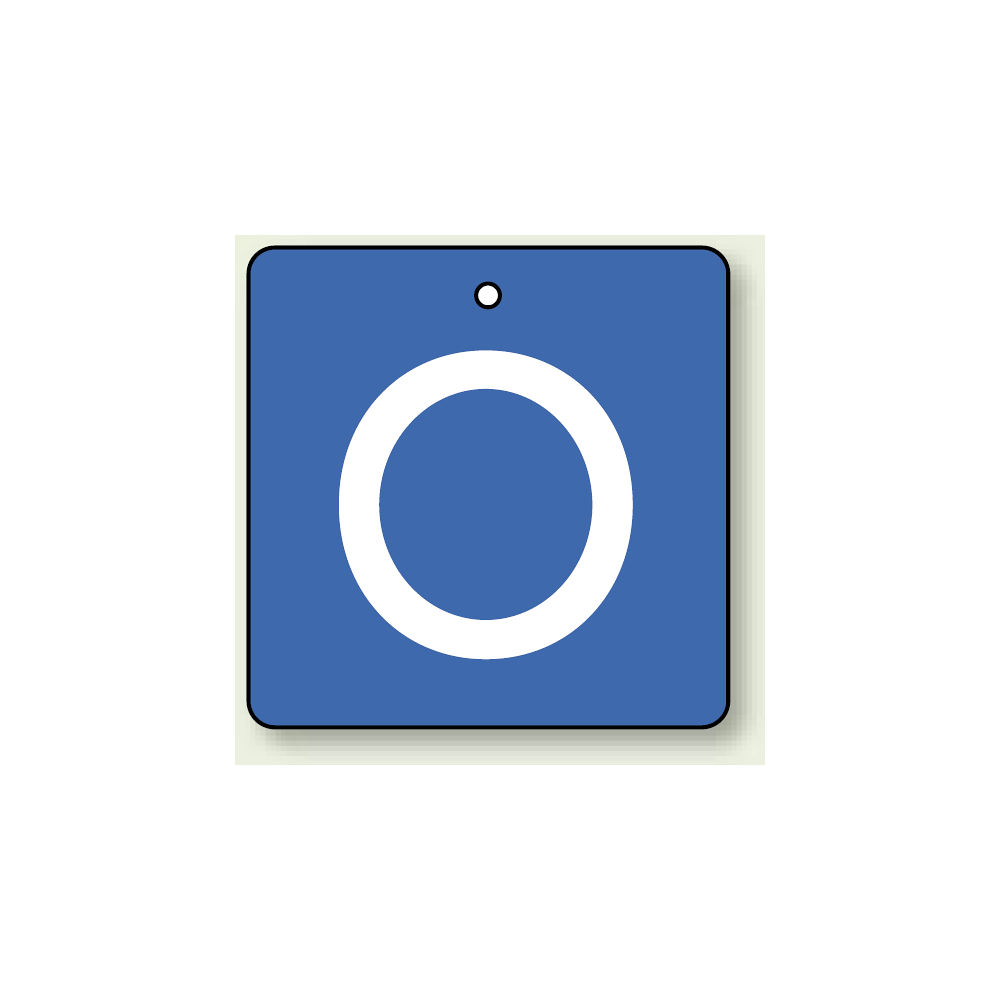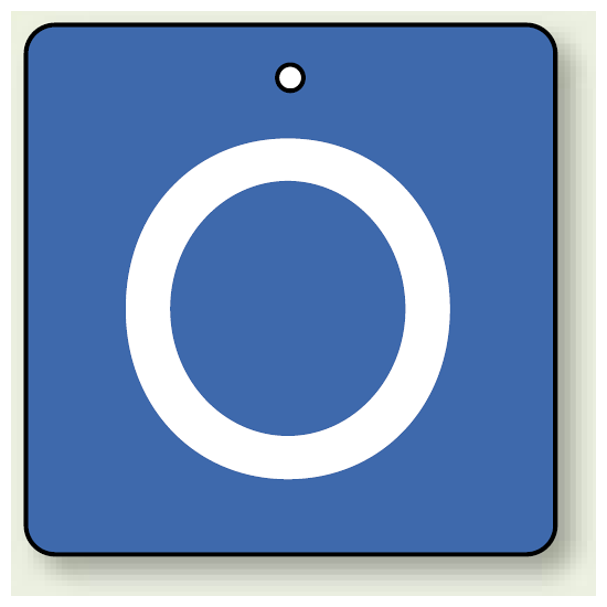 商品説明:バルブ開閉表示板 角型 O (青地白字) 65×65 5枚1組 (854-29)