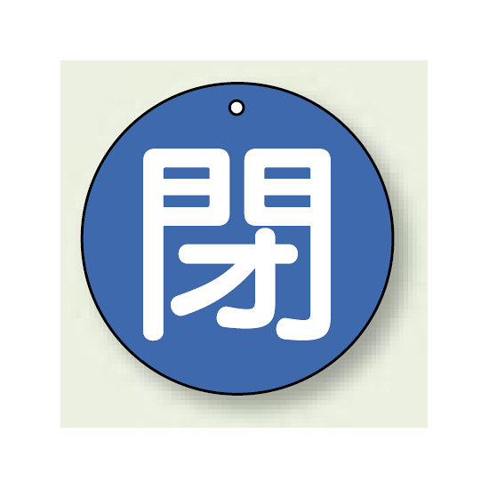 商品説明:バルブ開閉札 丸型 閉 (青地/白字) 両面表示 5枚1組 サイズ:30mmφ (854-53)