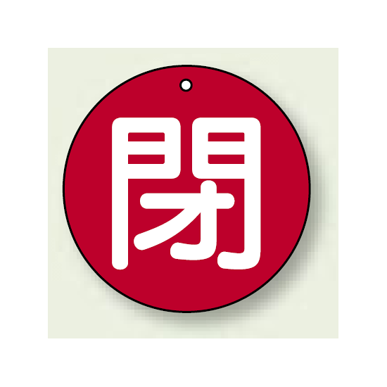 商品説明:バルブ開閉札 丸型 閉 (赤地/白字) 両面表示 5枚1組 サイズ:30mmφ (854-54)