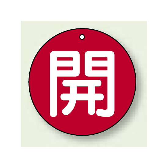 商品説明:バルブ開閉札 丸型 開 (赤地/白字) 両面表示 5枚1組 サイズ:50mmφ (854-61)