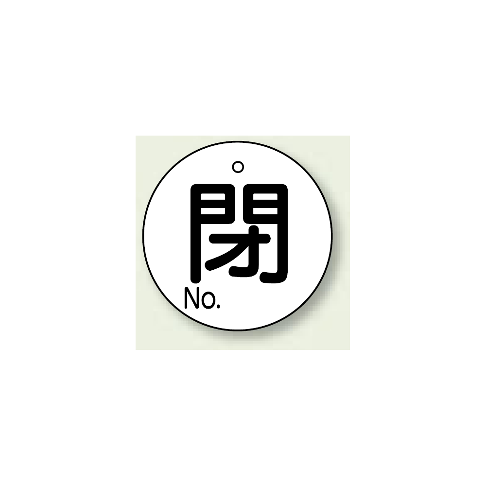 商品説明:バルブ開閉表示板 丸型 閉 (白地黒字) 60mmφ 5枚1組 (854-82)