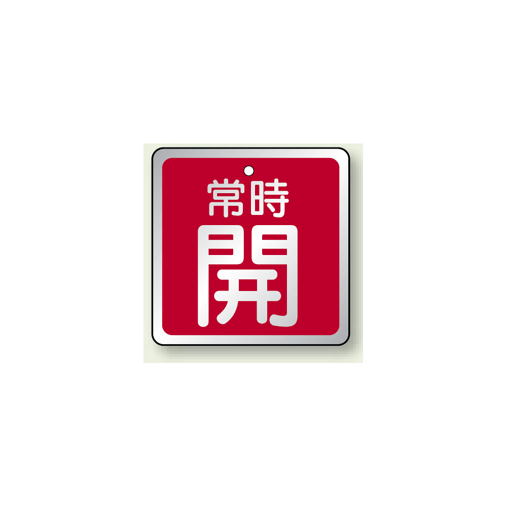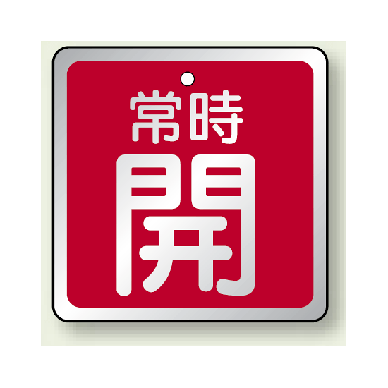 商品説明:バルブ開閉表示板 角型 常時開 (赤地白字) 65角・5枚1組 (857-18)
