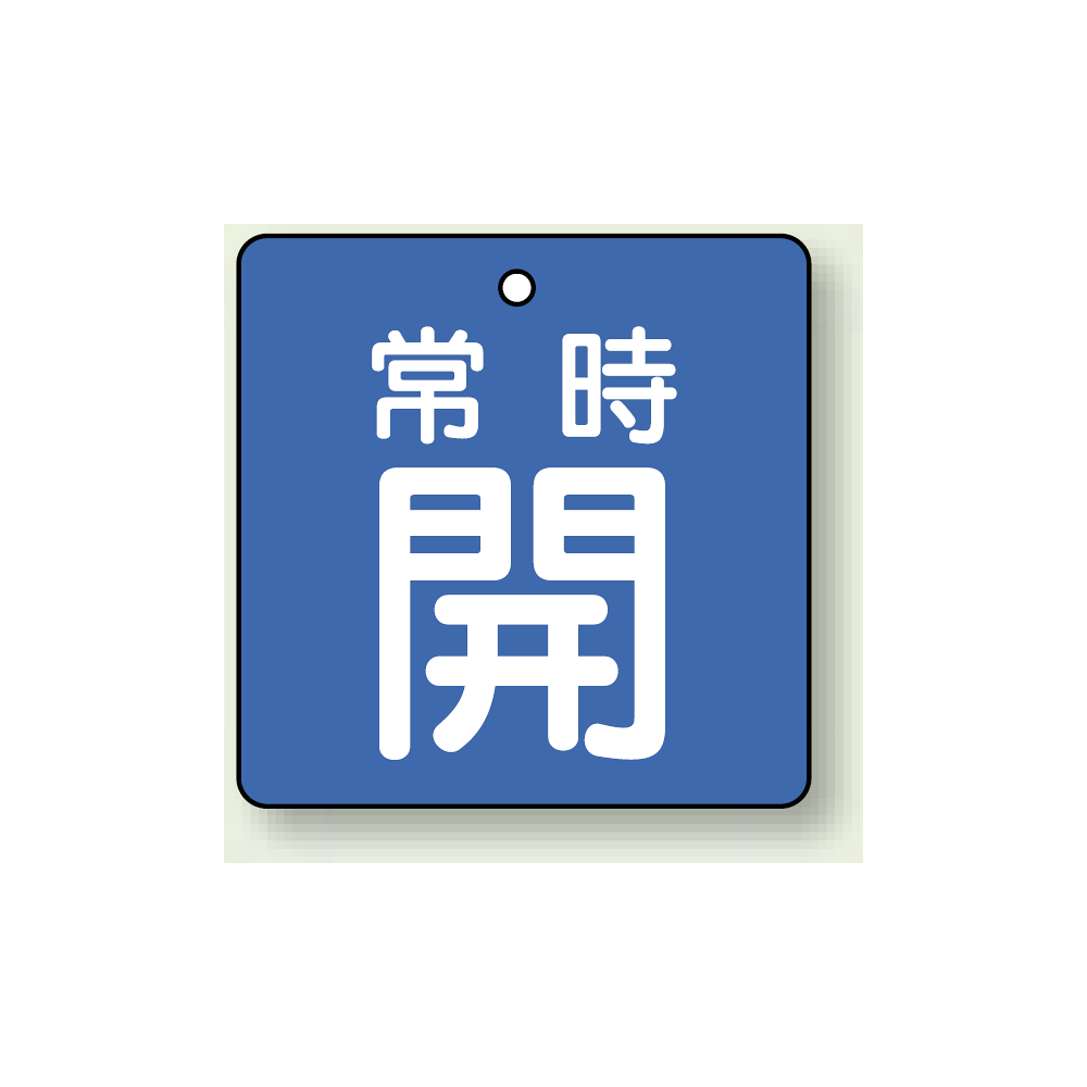 商品説明:バルブ開閉札 角型 常時開 (青地/白字) 両面表示 5枚1組 サイズ:50×50mm (855-01)