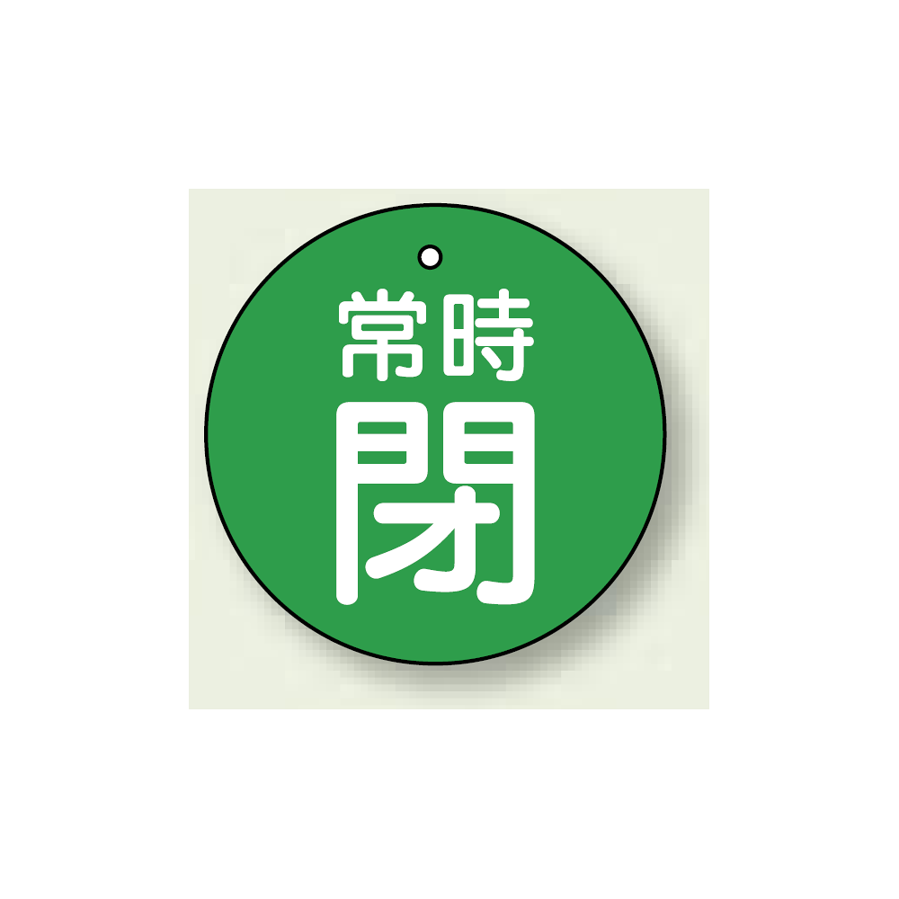 商品説明:バルブ開閉札 丸型 常時閉 (緑地/白字) 両面表示 5枚1組 サイズ:30mmφ (855-25)