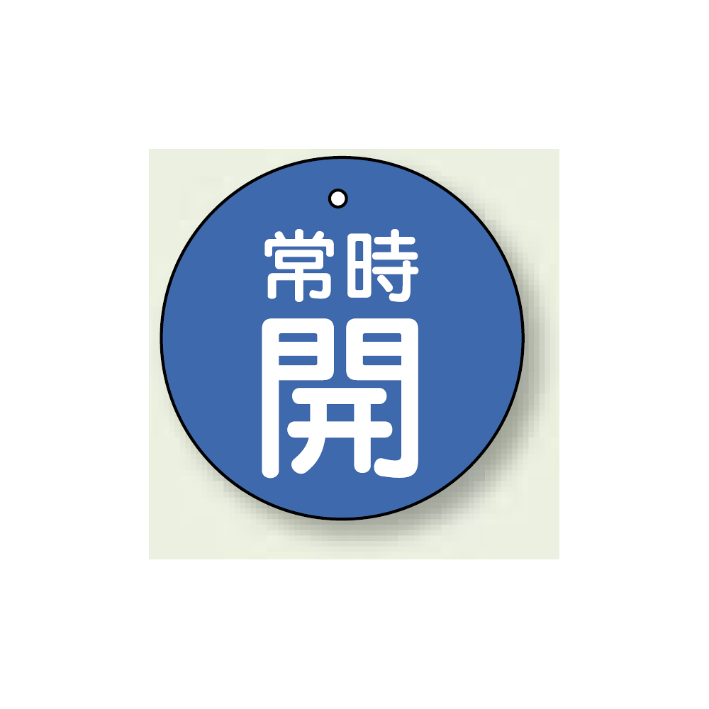 商品説明:バルブ開閉札 丸型 常時開 (青地/白字) 両面表示 5枚1組 サイズ:50mmφ (855-26)