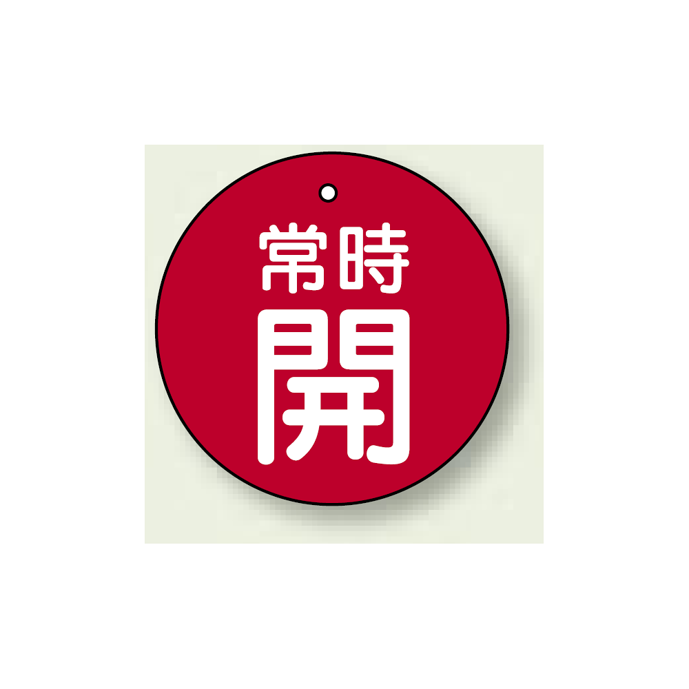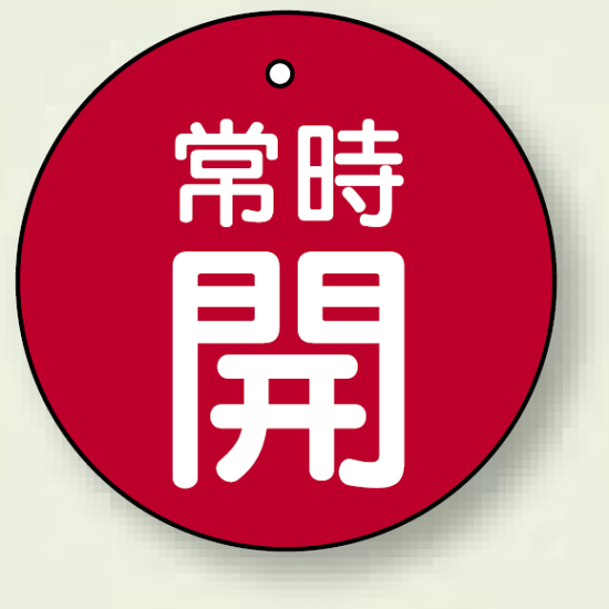 商品説明:バルブ開閉札 丸型 常時開 (赤地/白字) 両面表示 5枚1組 サイズ:50mmφ (855-27)