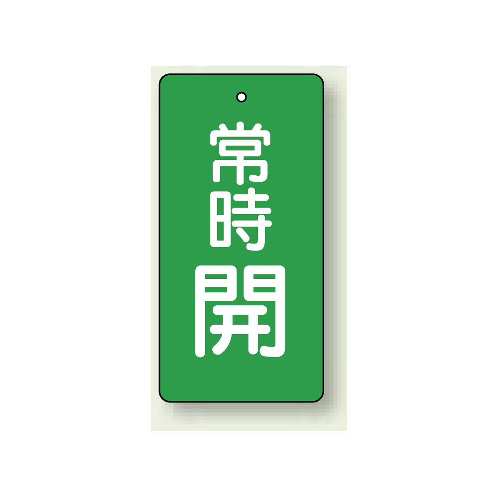 バルブ開閉札 長角型(タテ型) 常時開 (緑地/白字) 両面表示 5枚1組 サイズ:H50×W25mm (855-42)