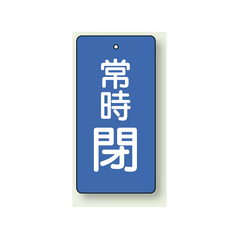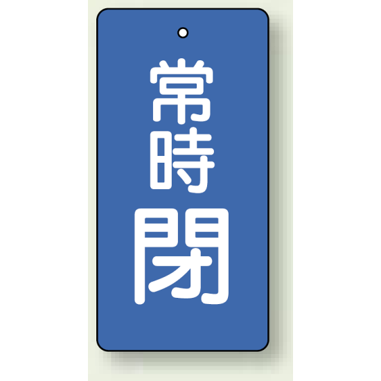 商品説明:バルブ開閉札 長角型(タテ型) 常時閉 (青地/白字) 両面表示 5枚1組 サイズ:H50×W25mm (855-43)