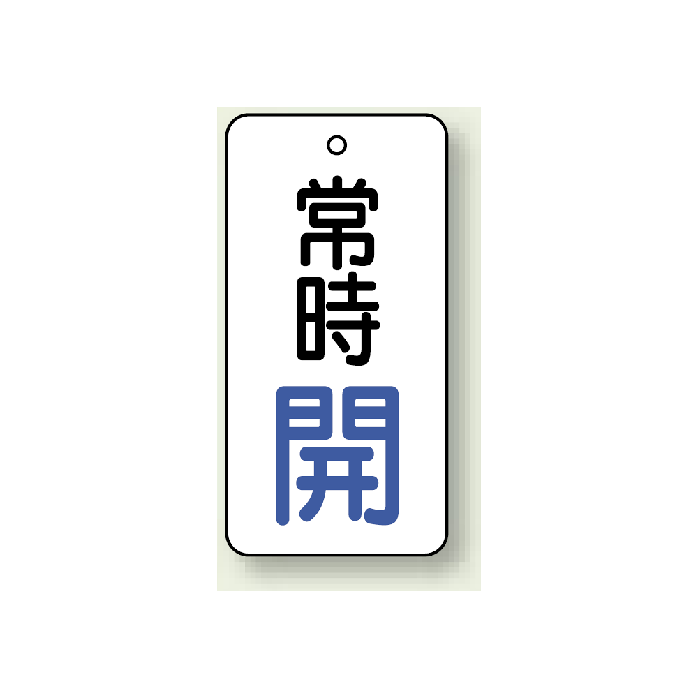 商品説明:バルブ開閉札 長角型 常時・開 (白地/青字) 両面表示 5枚1組 サイズ:H50×W25mm (855-64)