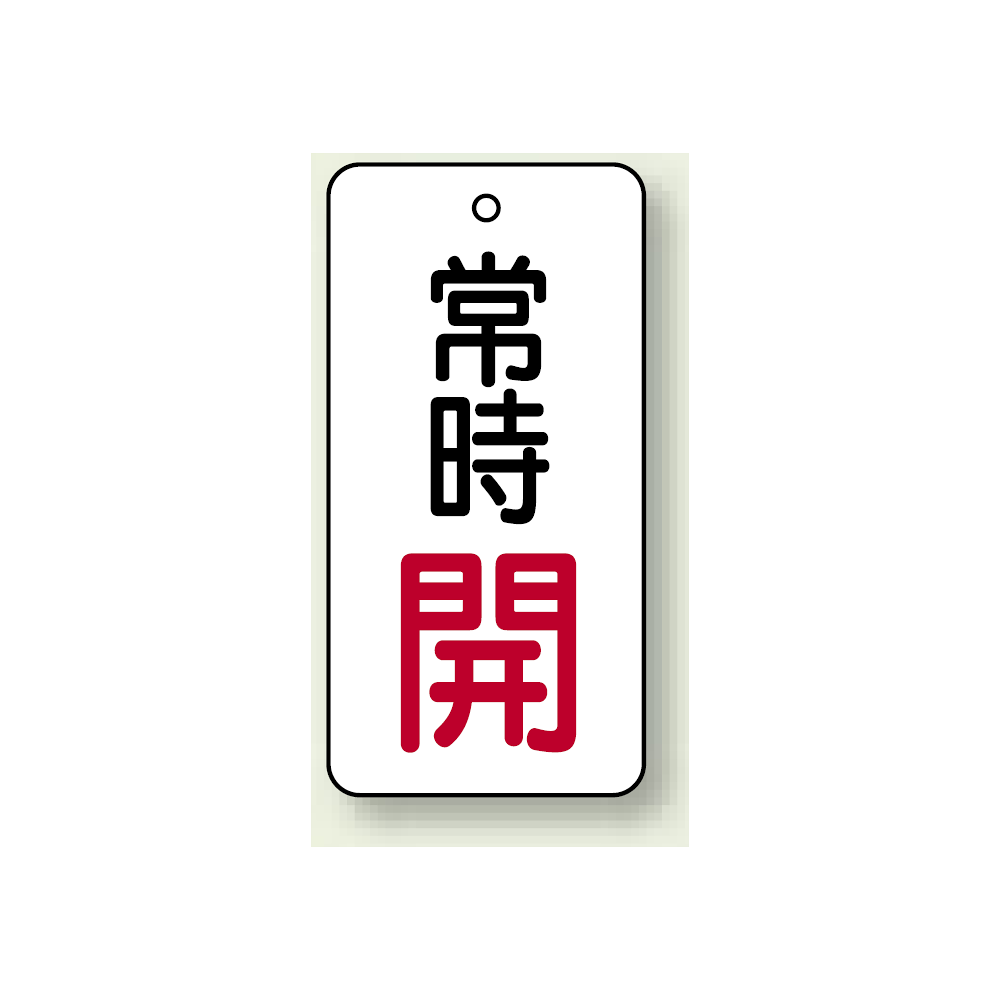 商品説明:バルブ開閉札 長角型 常時・開 (白地/赤字) 両面表示 5枚1組 サイズ:H50×W25mm (855-65)