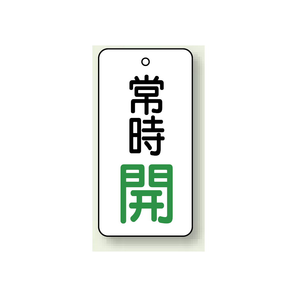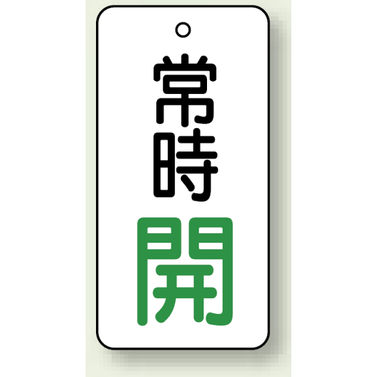 商品説明:バルブ開閉札 長角型 常時・開 (白地/緑字) 両面表示 5枚1組 サイズ:H50×W25mm (855-66)