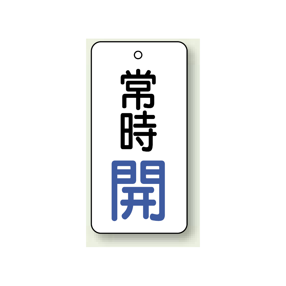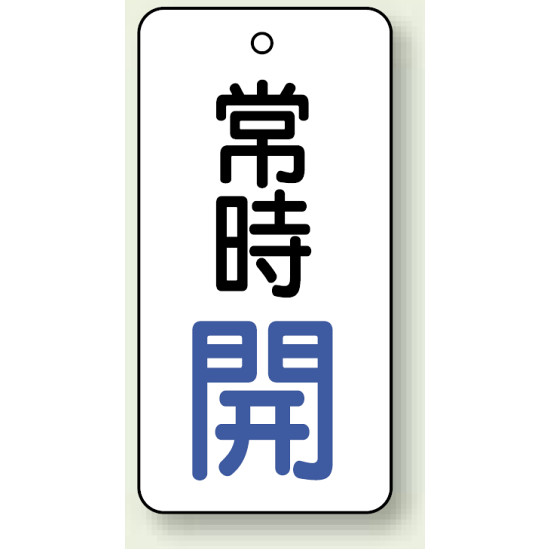 商品説明:バルブ開閉札 長角型 常時・開 (白地/青字) 両面表示 5枚1組 サイズ:H80×W40mm (855-70)