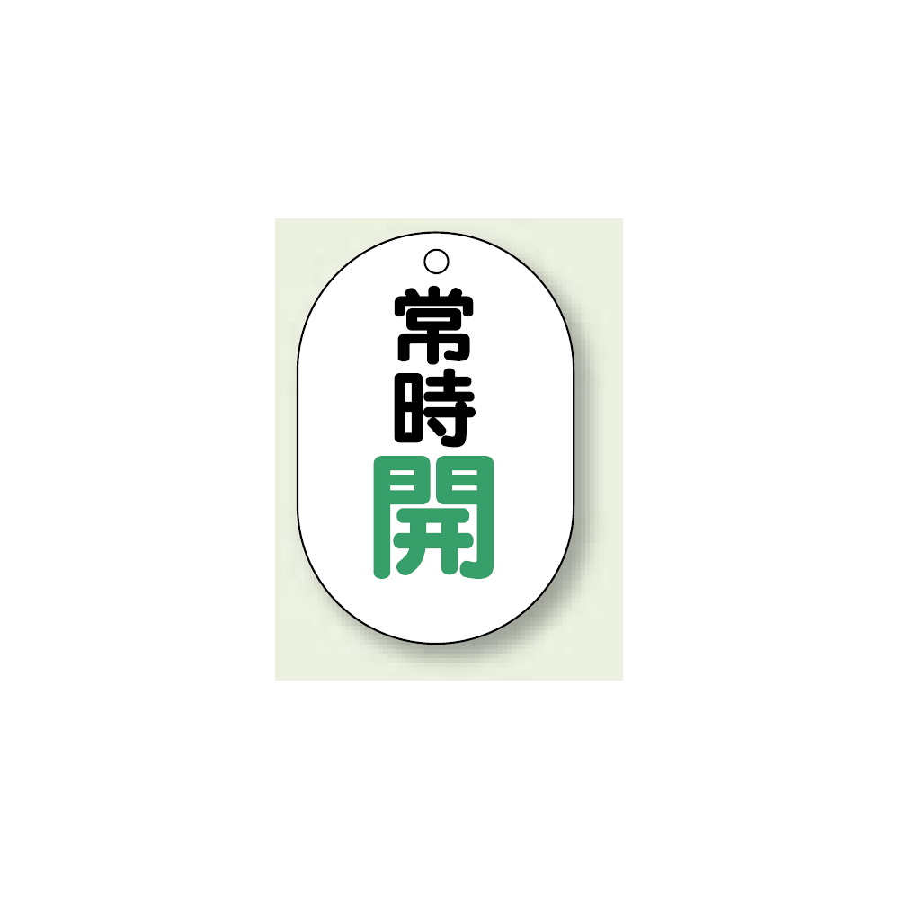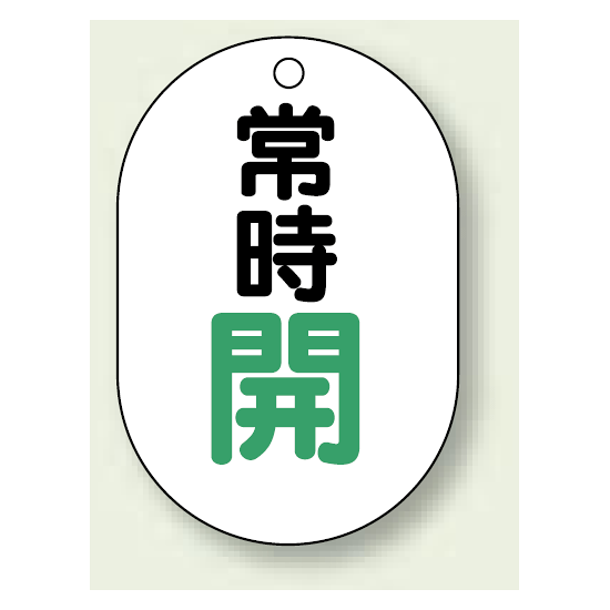 商品説明:バルブ開閉表示板 小判型 常時開 緑字 70×47 5枚1組 (454-03)