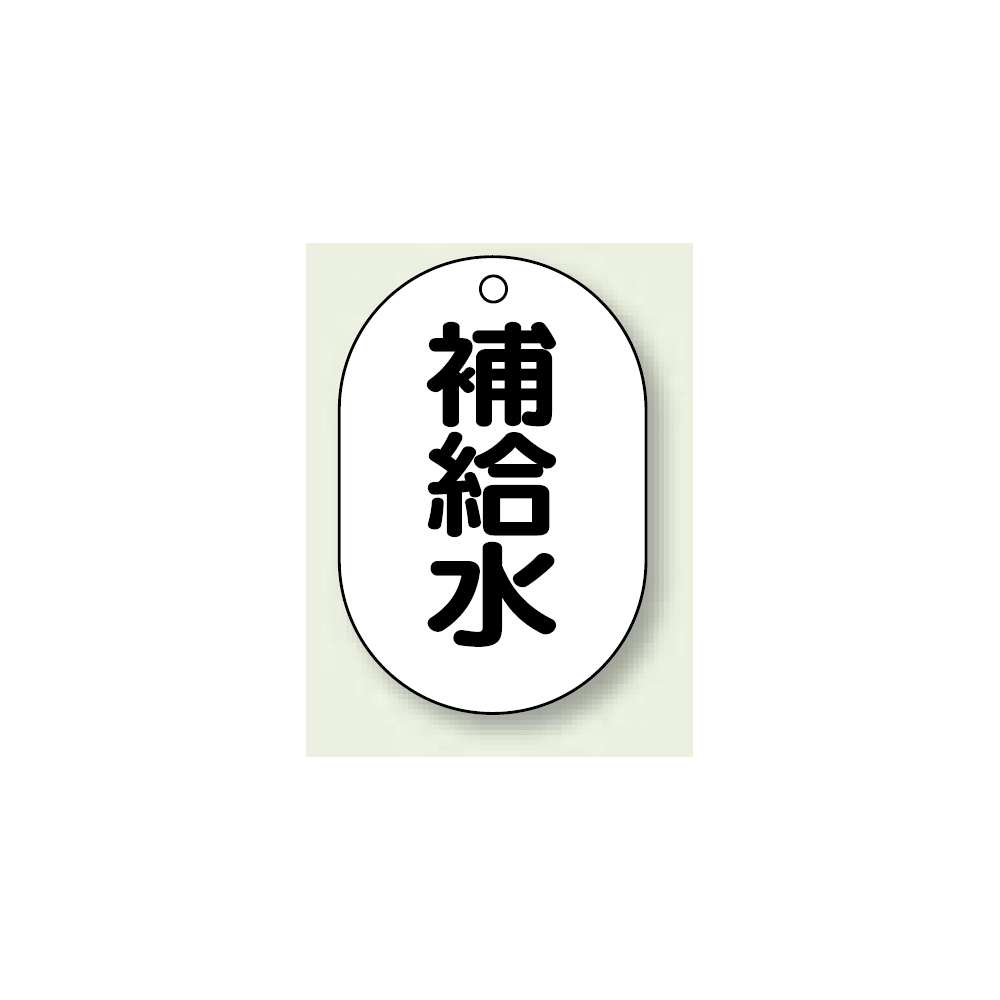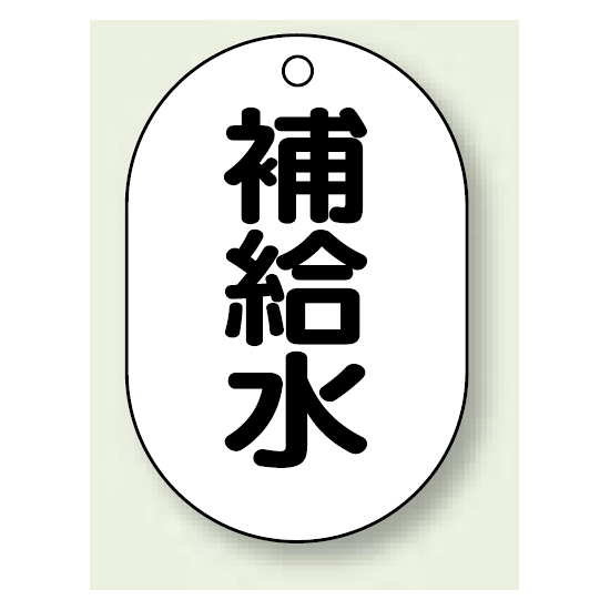 商品説明:バルブ開閉表示板 小判型 補給水 黒字 70×47 5枚1組 (454-45)