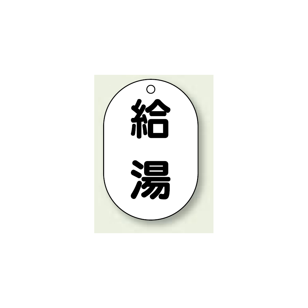 商品説明:バルブ開閉表示板 小判型 給湯 黒字 70×47 5枚1組 (454-46)