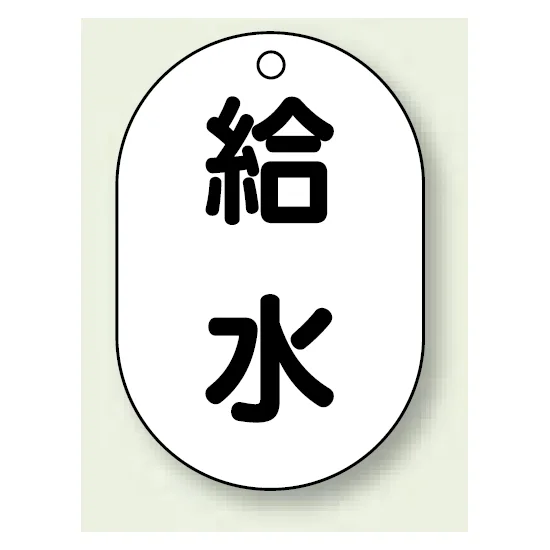 バルブ開閉表示板 小判型 給水 黒字 70×47 5枚1組 (454-47)