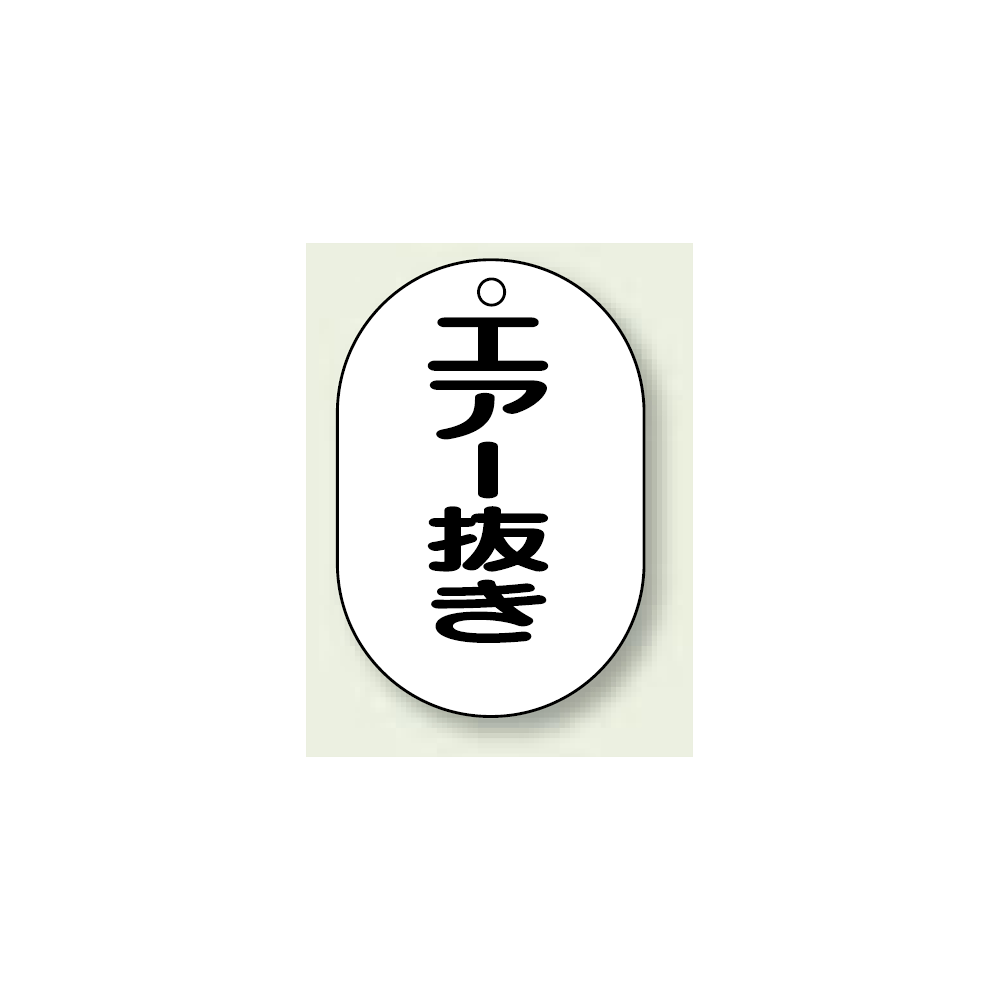 商品説明:バルブ開閉表示板 小判型 エアー抜き 黒字 70×47 5枚1組 (454-50)