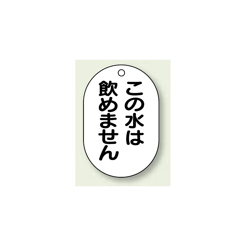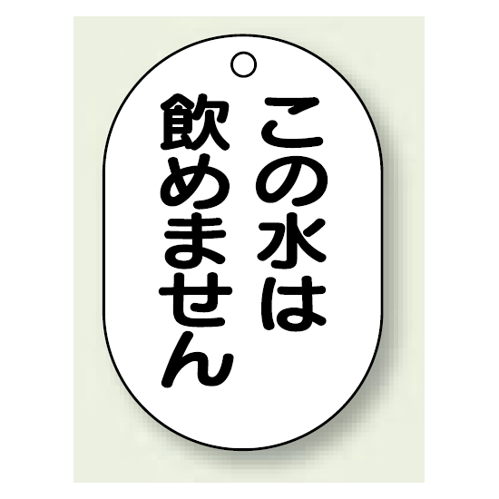 商品説明:バルブ開閉表示板 小判型 この水は飲めません 黒字 70×47 5枚1組 (454-55)