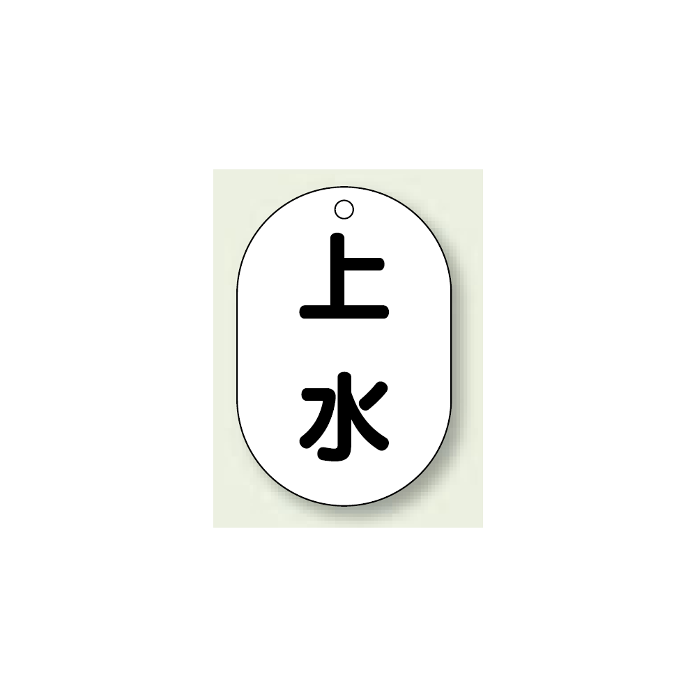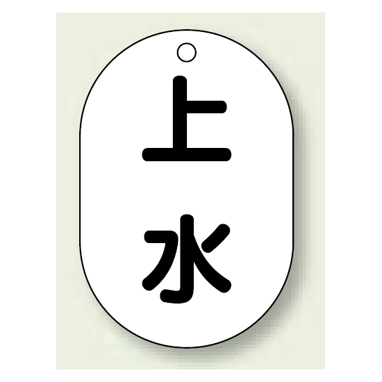 商品説明:バルブ開閉表示板 小判型 上水 黒字 70×47 5枚1組 (454-57)