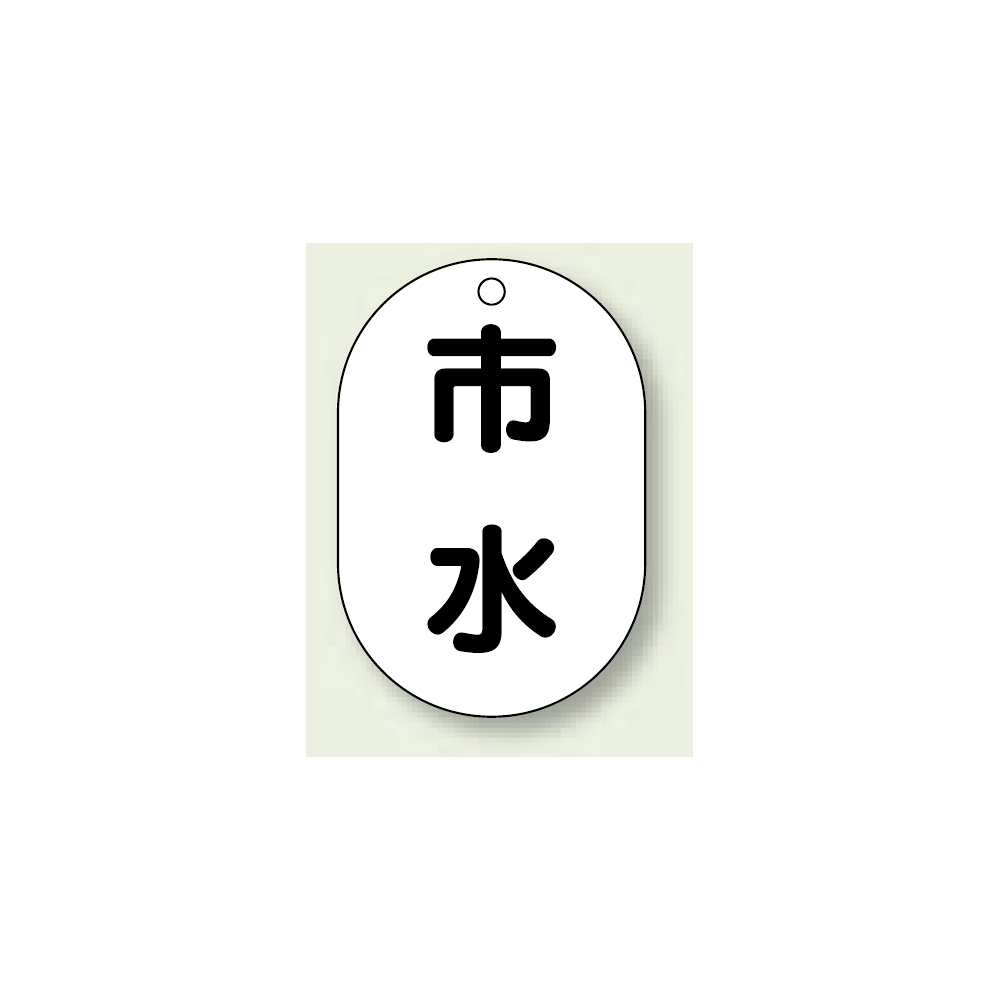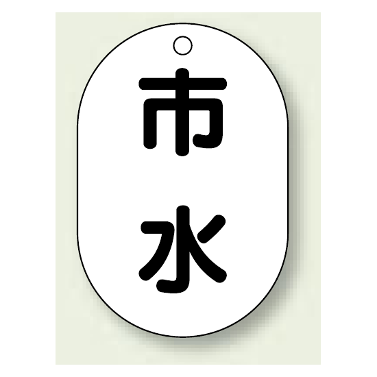 商品説明:バルブ開閉表示板 小判型 市水 黒字 70×47 5枚1組 (454-59)