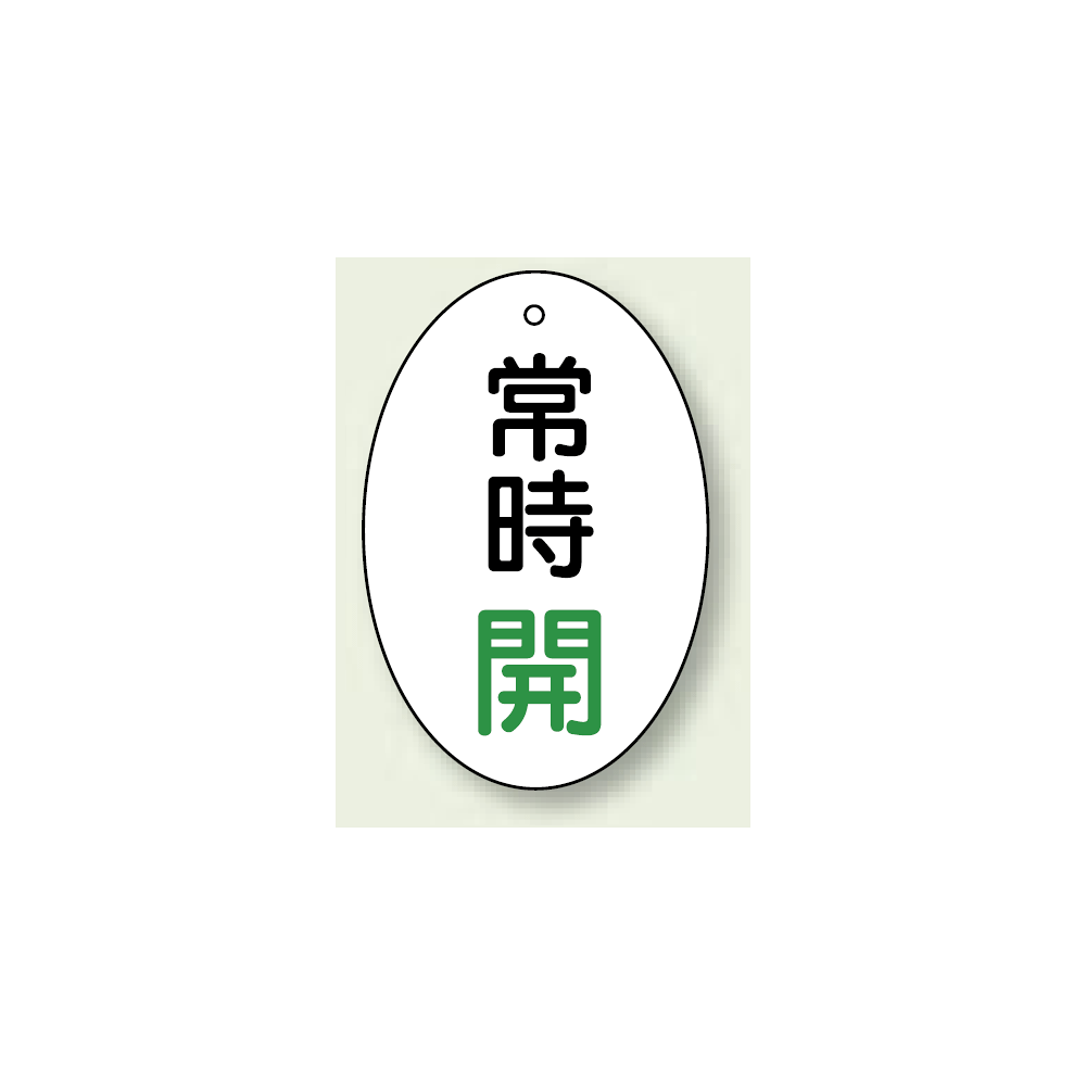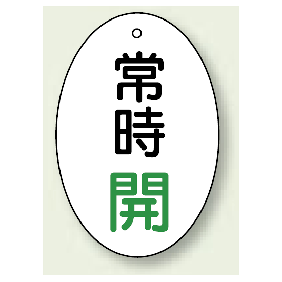 商品説明:バルブ開閉表示板 だ円型 常時開 緑字 60×40 5枚1組 (855-82)