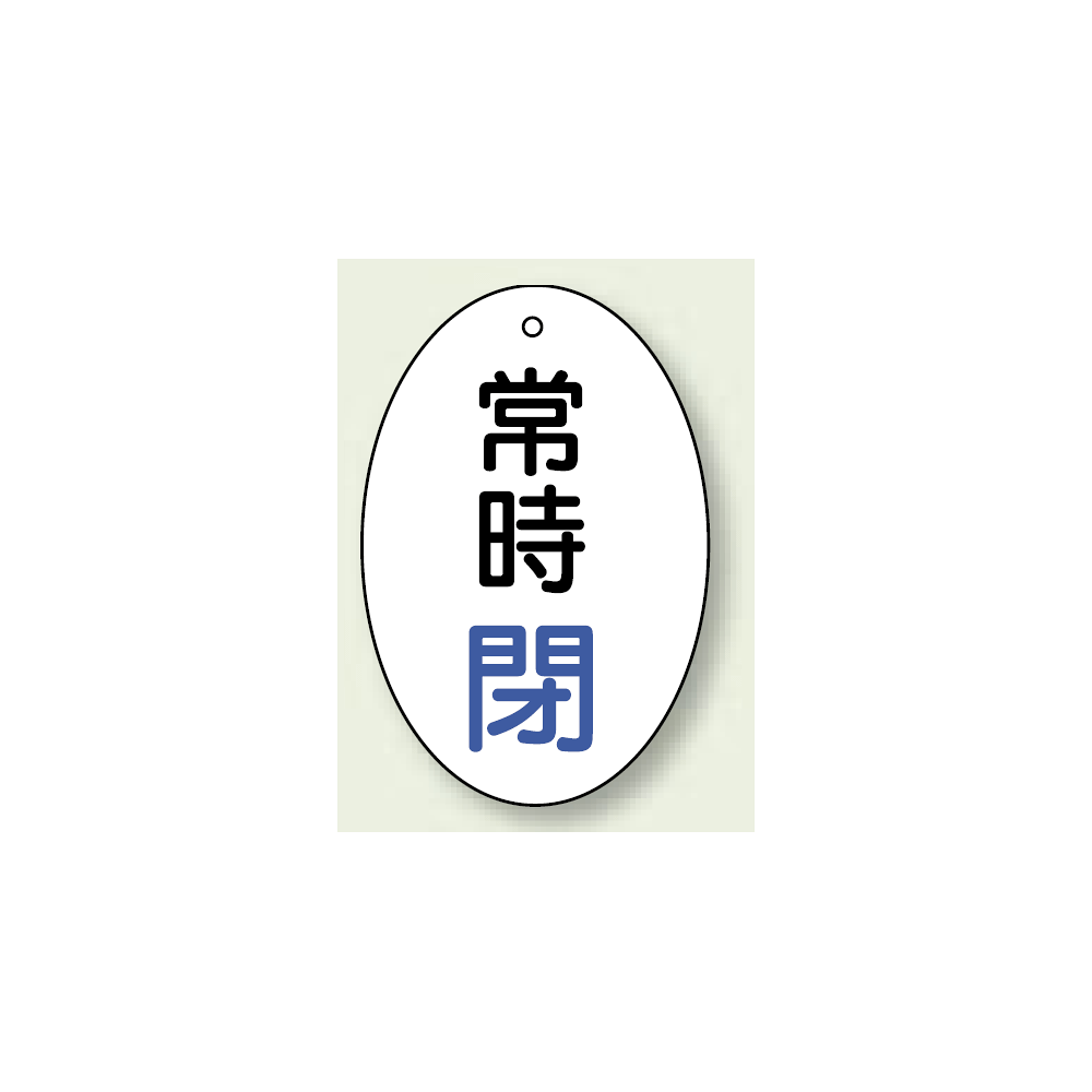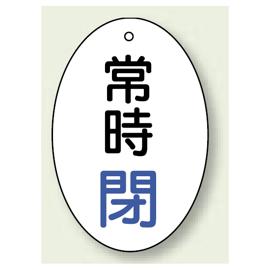 バルブ開閉表示板 だ円型 常時閉 青字 60×40 5枚1組 (855-83)