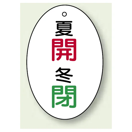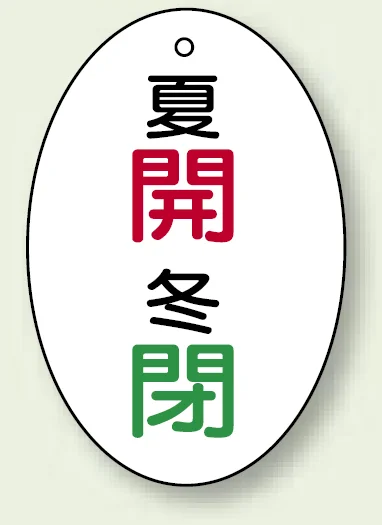 バルブ開閉表示板 だ円型 夏開 冬閉 60×40 5枚1組 (855-86)