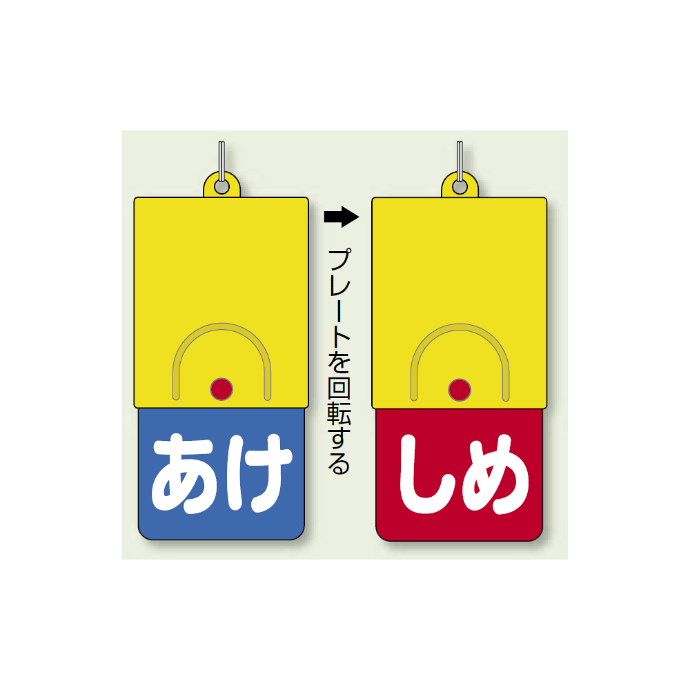 商品説明:回転式両面表示板 あけ (青地) ・しめ (赤地) (857-57)