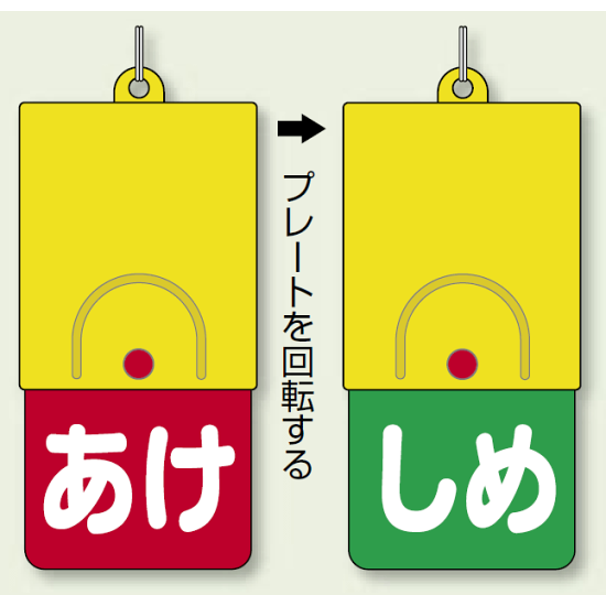 商品説明:回転式両面表示板 あけ (赤地) ・しめ (緑地) (857-58)
