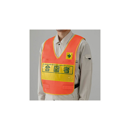 商品説明:反射両面表示付ベスト 表示内容&色:合図者 (蛍光オレンジ) (379-691)