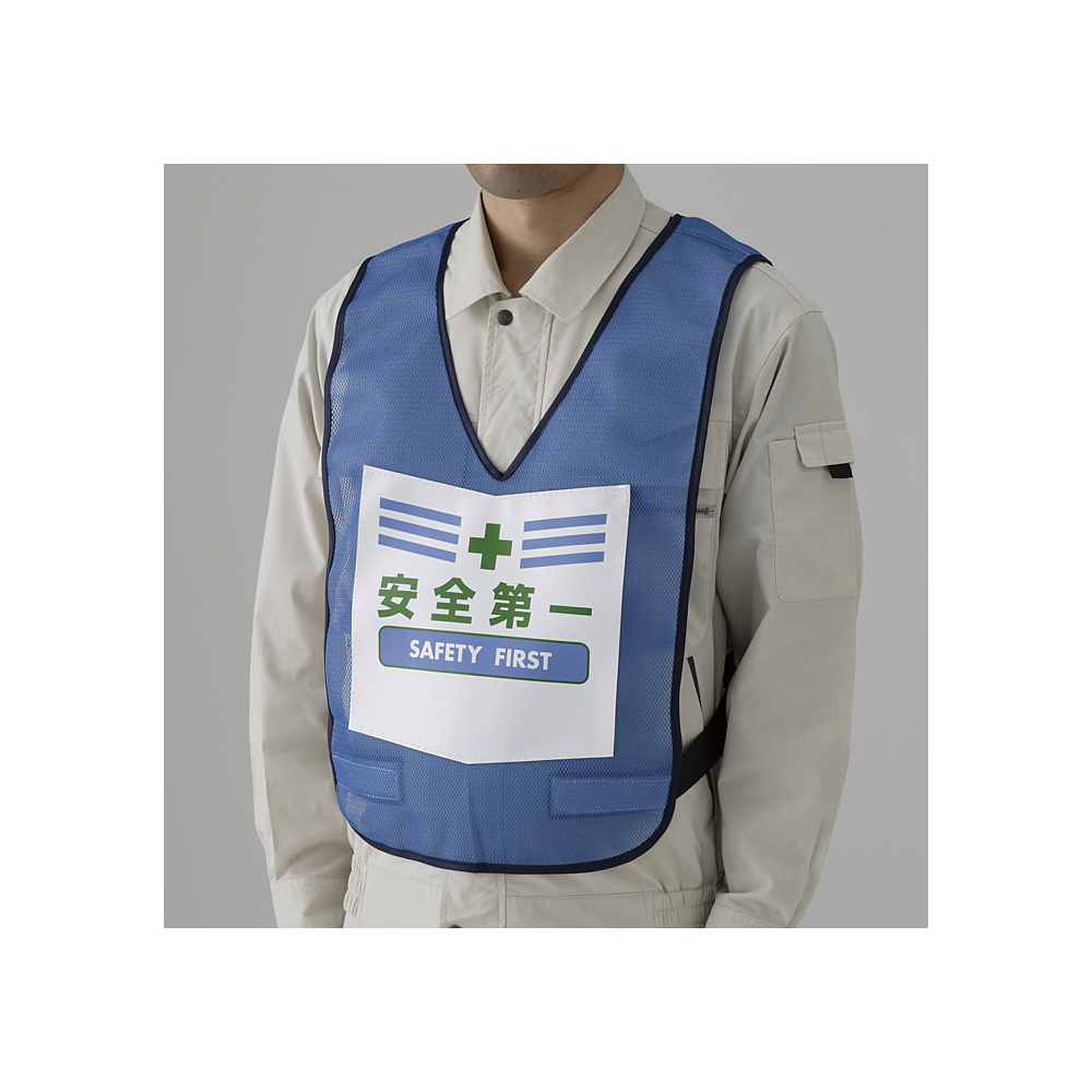 商品説明:両面表示付ベスト 青 安全第一 (873-90BL)