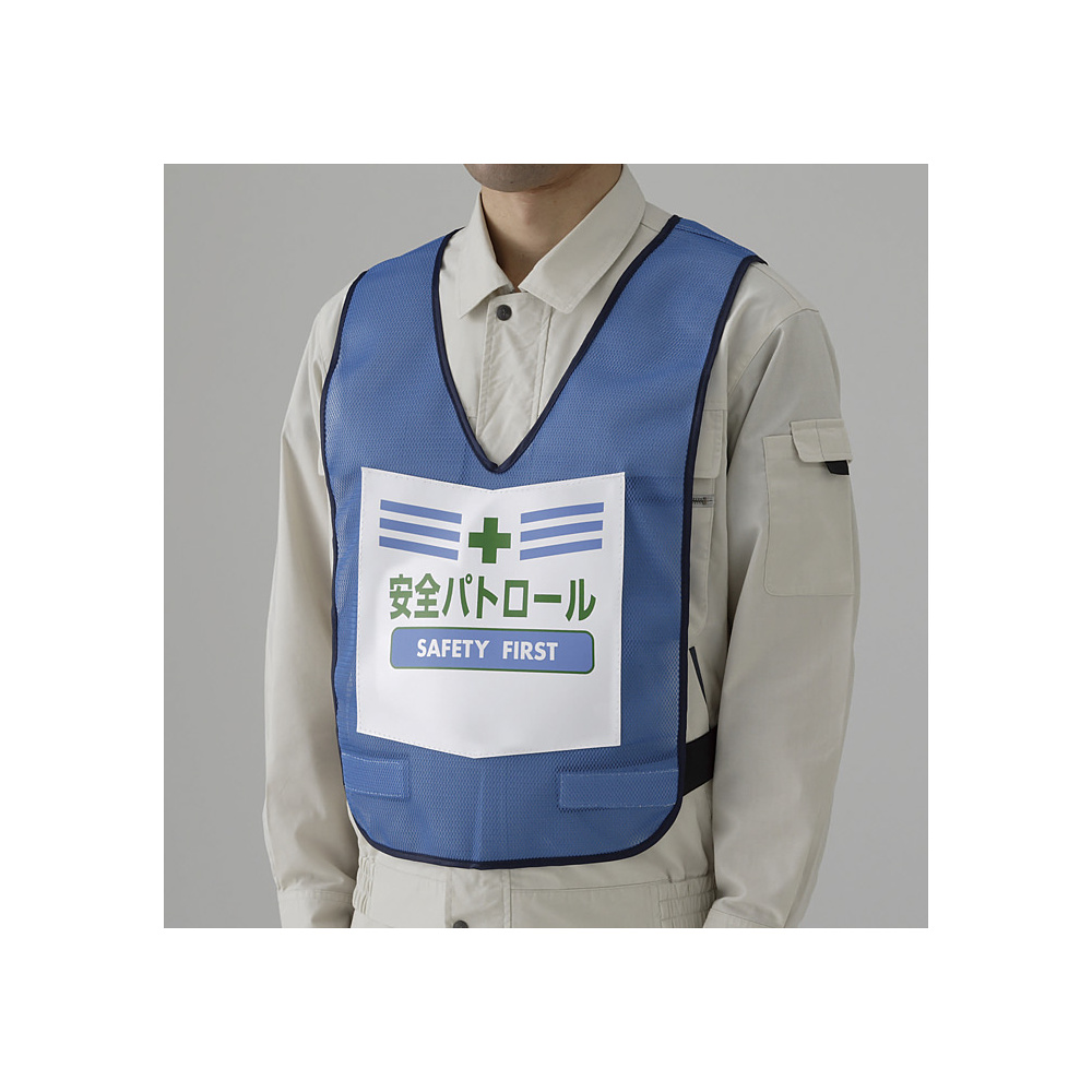 商品説明:両面表示付ベスト 青 安全パトロール (873-91BL)