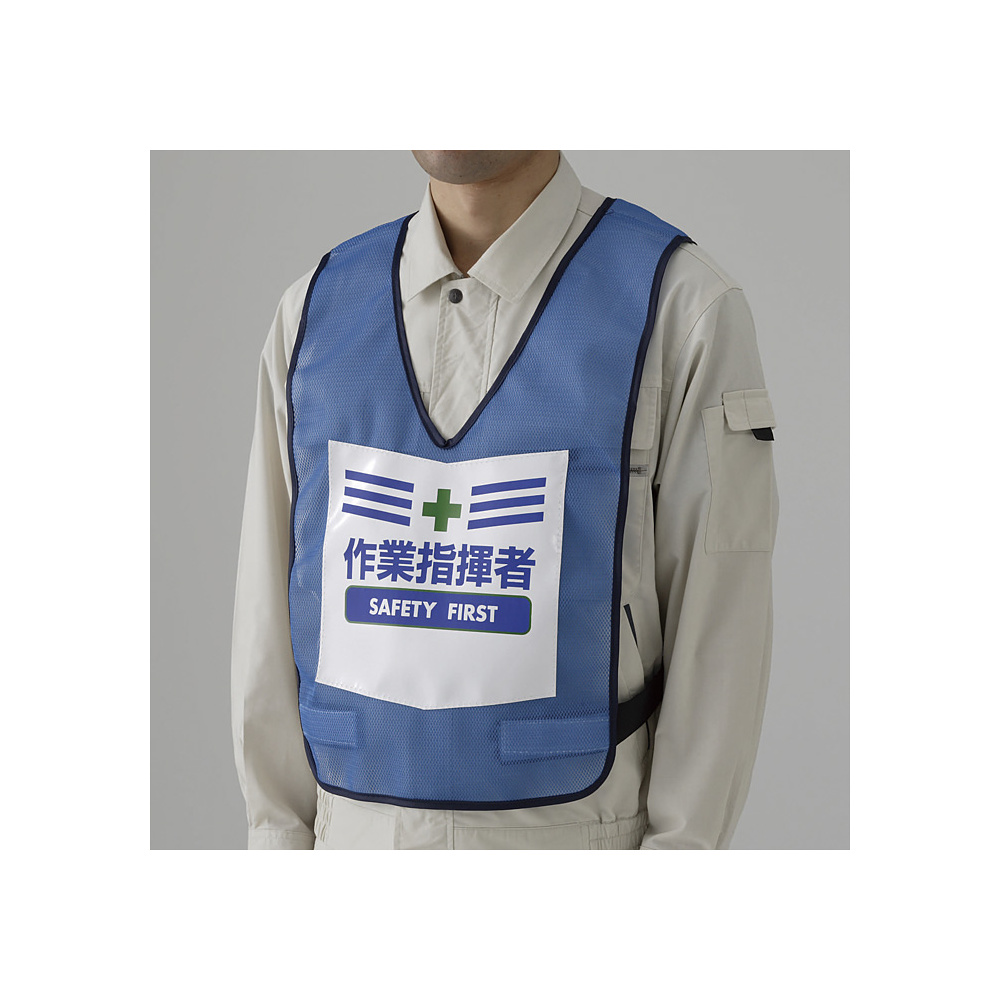 商品説明:両面表示付ベスト 青 作業指揮者 (873-93BL)